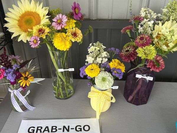 Visit our self-serve farm stand, open 8-8 daily. You'll find a variety of goodies, including Grab-N-Go Bouquets and fresh-baked sourdough bread! New items available as the season changes.